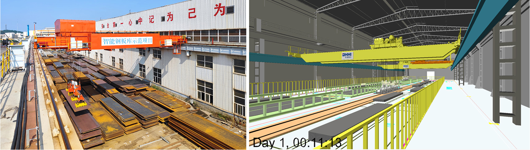 智能起重输送系统采用具有自主决策特性的算法、程序化生产管理思想,在接收生产任务后基于出入库策略,自主分解计划,完成库位选择,起重输送设备选择等,实现设备智能调度。